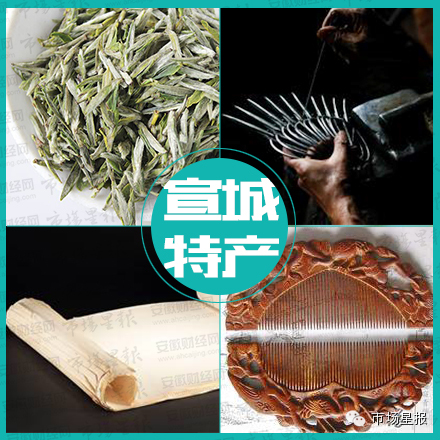 宣纸、宣笔、宁国山核桃、涌溪火青、宣木瓜、广德毛竹、泾县兰香茶、水东蜜枣、后山剪刀、泾县木梳、姚村闷酱、旌德三麻、绩溪蚕丝、徽墨、宣州红线毯、宣城诸葛笔、宣城雪梨、水东琥珀枣、敬亭绿雪茶、郎溪瑞草魁、宁国黄花云尖、绩溪梅花白厂丝、宣酒