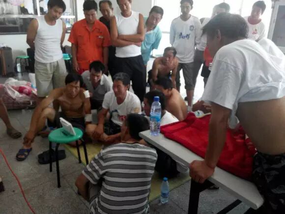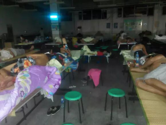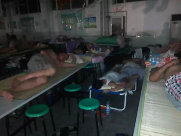 贾师傅一家目前被安排到天津市开发区第二小学里,这里已经作为外来打工者的临时安置点。8月13日,有越来越多的外来打工者被临时安置到这里,他们基本都是在附近的工厂或者建筑工地上班。目前,这个安置点大约接收了600来人。