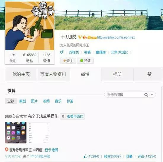 刷微博,“来自iphone6 plus”的时候