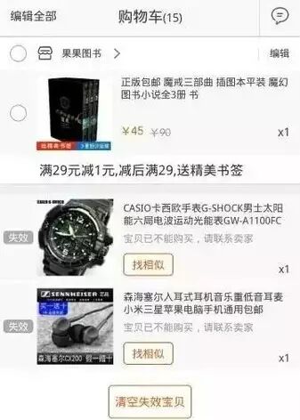 购物车的宝贝失效