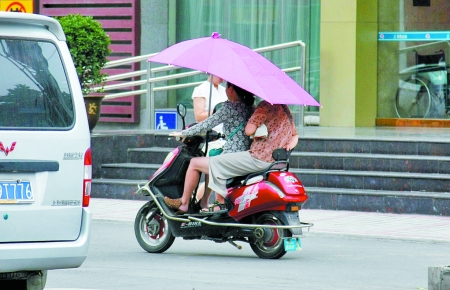 经常看到有人在电动车踏板上装载过重和大型物品。这样巨大的物品占满了电动车的所有空间,而且挡住了车笼头的左右扭动,容易造成笼头转弯不及时而失控!