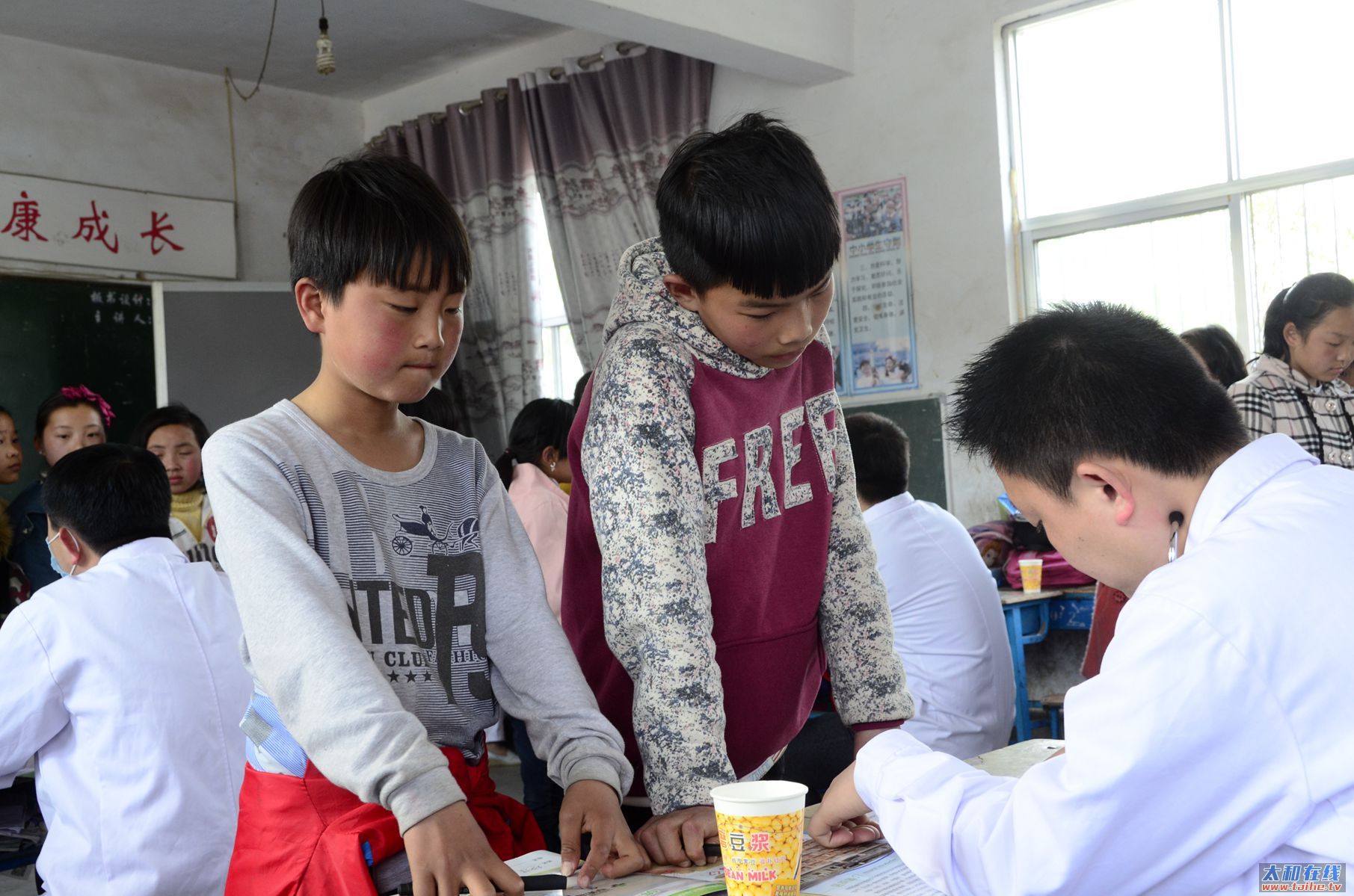 为促进乡村儿童(留守儿童)健康成长,4月1日下午,阜阳市心连心志愿者协会联合阜阳疝病专科医院、阜阳蓝天救援队、太和县文明办、太和县教育局、太和县红十字会、太和县苗为民爱心社共同走进太和县胡总镇中心小学,开展“爱在春天里”5号爱心列车暨关爱留守儿童专列驶进太和县胡总镇中心小学进校园公益活动。为留守儿童开展免费体检、防溺水宣传,捐赠国学经典《弟子规》书籍,弘扬国学孝道,传递社会正能量,并发放爱心书包,应急救护箱,鸿基金邮箱。